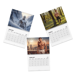 Turn the page on ordinary wall calendars and step into a year of myth, muscle, and cinematic fantasy. The Mythical Men 2026 Wall Calendar reimagines the classic firefighter-style calendar through a legendary lens, featuring powerful, shirtless male figures inspired by iconic mythical creatures. Each month captures a moment that feels caught mid-scene, confident, sensual, and unmistakably aware of the viewer.